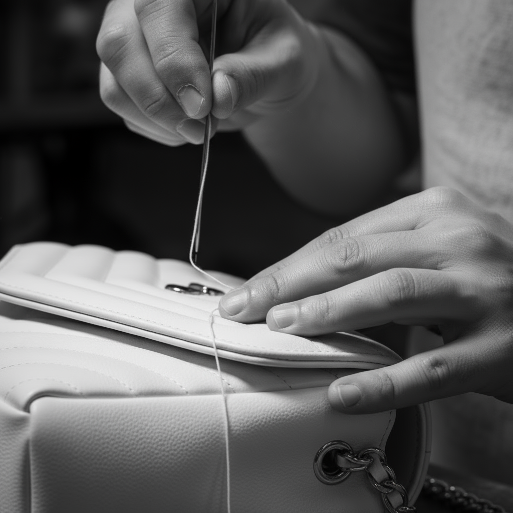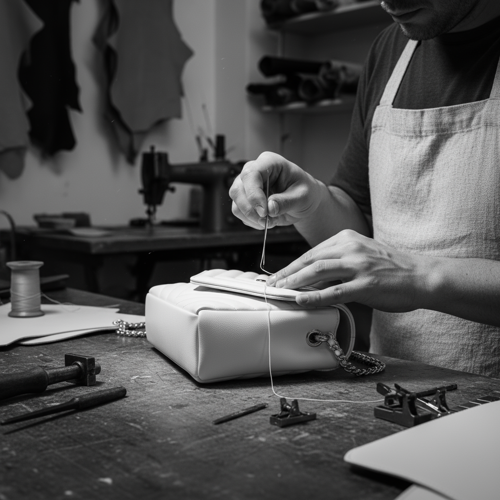 En nuestros talleres europeos, los artesanos cortan, cosen y terminan los bordes de cada bolso a mano. Los bordes se pintan con capas superpuestas y luego se bruñen para alisarlos. Los herrajes se ajustan y pulen, y las costuras se revisan con luz natural. Las tiradas limitadas garantizan la atención al detalle desde el primer patrón hasta la impresión final.